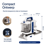 Twee aparte reservoirs - Schoon en vuil water worden gescheiden gehouden, eenvoudig te vullen en te legen voor hygiënisch gebruik.
