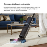 De Aqualis S1 is een krachtige alles-in-één dweilstofzuiger die stofzuigt en dweilt in één beweging, zonder strepen of dubbele rondes. De VortexCore™ motor houdt de zuigkracht constant, ook bij haren en vuil langs de plinten, zodat elk oppervlak grondig schoon wordt.